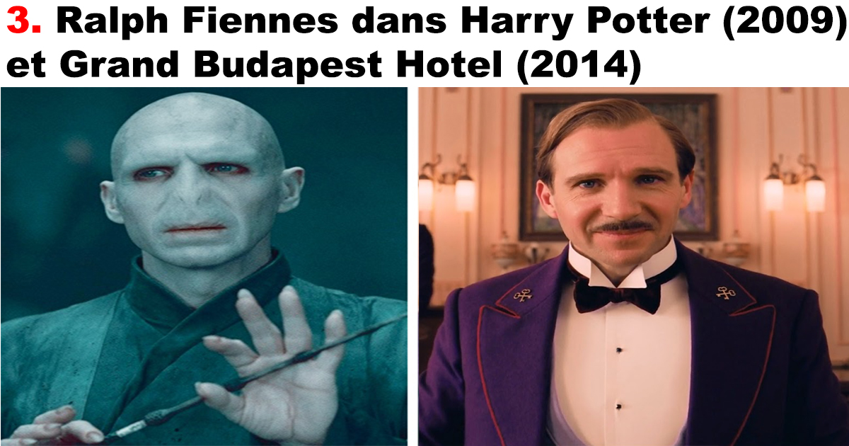 3. Ralph Fiennes dans Harry Potter (2009) et Grand Budapest Hotel (2014)