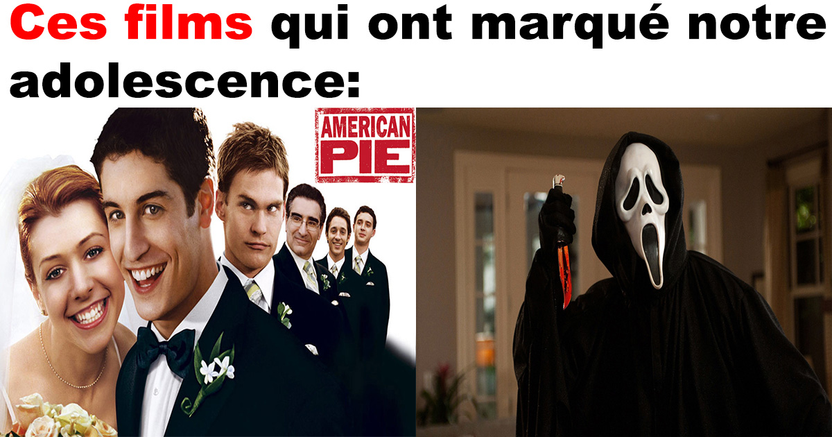 25 films qui ont marqué votre adolescence si vous êtes nés dans les années 1990 5 novembre 2017 Facebook Article Précédent Article Suivant 1. American Pie 2. Frissons3. Destination ultime4. Star Wars5. Un Pari cruel6. Fight Club 7. X-Men8. Trainspotting9. American History X10. La trilogie du Seigneur des anneaux11. The Ring12. La trilogie Matrix13. Jurassic Park 14. Fiction pulpeuse 15. Méchantes Ados16. Les Blancs ne savent pas sauter17. Scary Movie18. Le Journal d’une princesse19. Harry Potter20. Armageddon21. Independance Day22. Le Sixième Sens23. Une aventure de Cendrillo24. Titanic25. Spider-man Facebook Article Précédent Article Suivant
