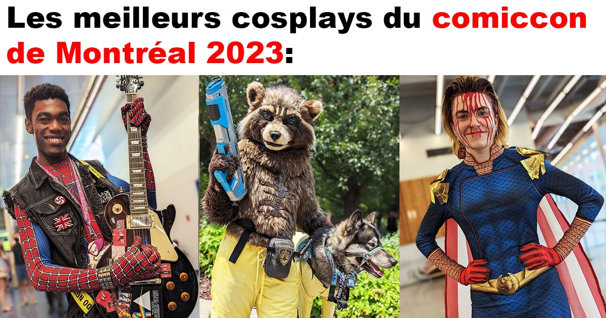 80 cosplays du comiccon de Montréal 2023 17 juillet 2023 Facebook Article Précédent Article Suivant Les meilleurs Cosplays du ComicCon de Montréal cette année. N’hésitez pas à suivre les différents photographes à travers l’article. Crédit: ComicCon de Montreal Crédit: Radio-canadaCrédit: Rickshiro PhotosCrédit: Geekesaresexy Facebook Article Précédent Article Suivant