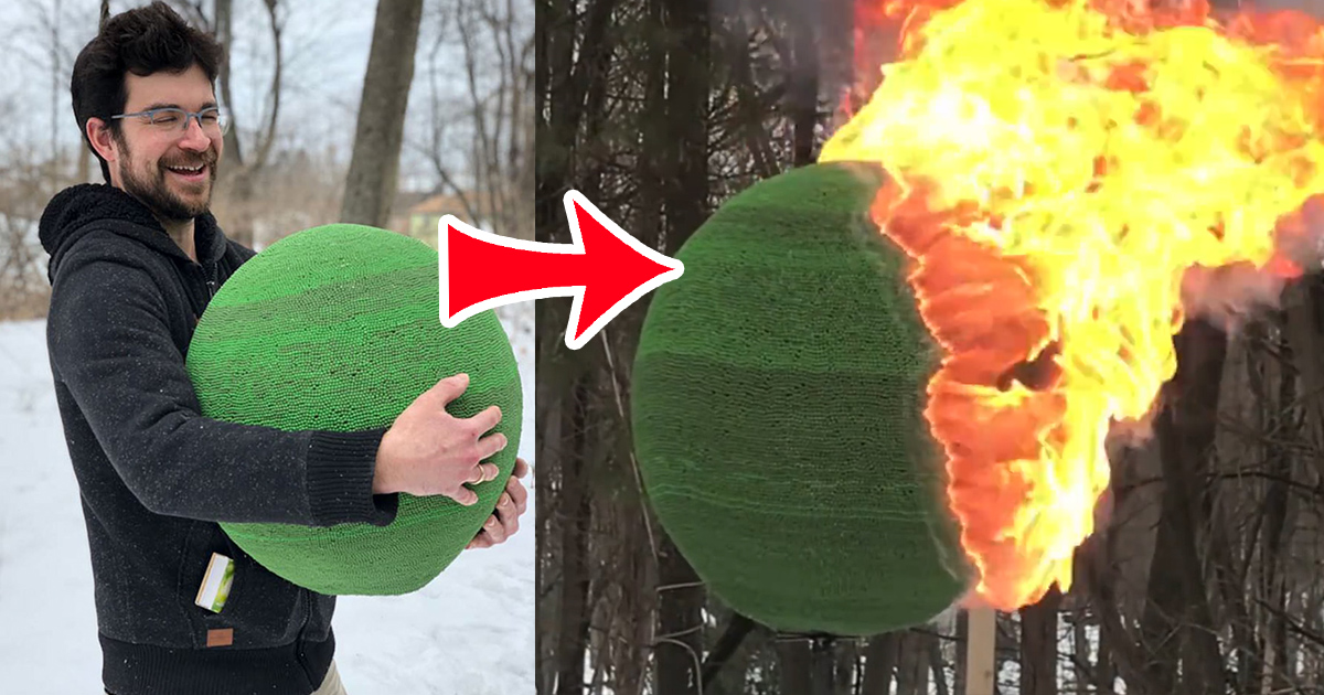 Et après des heures et des heures de travail, il a finalement mis le feu à sa boule! Voici le résultat en vidéo: