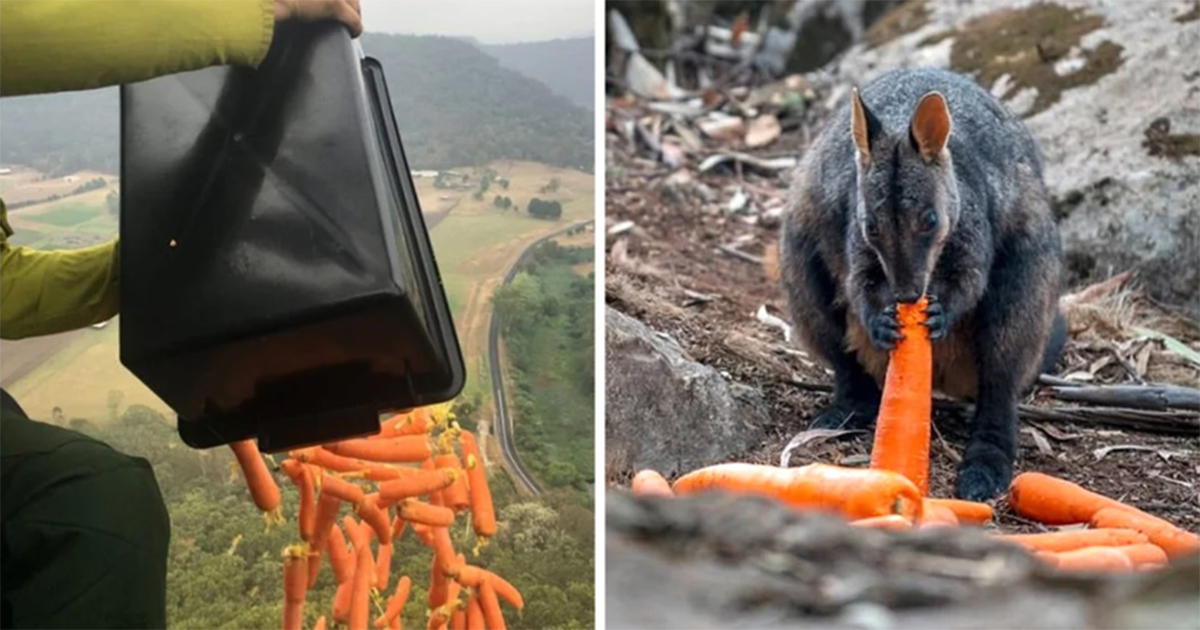 Afin d’aider les animaux affamés qui subissent les conséquences des feux de forêt en Australie, des avions ont été déployés pour larguer des milliers de kilogrammes de carottes et de patates douces.