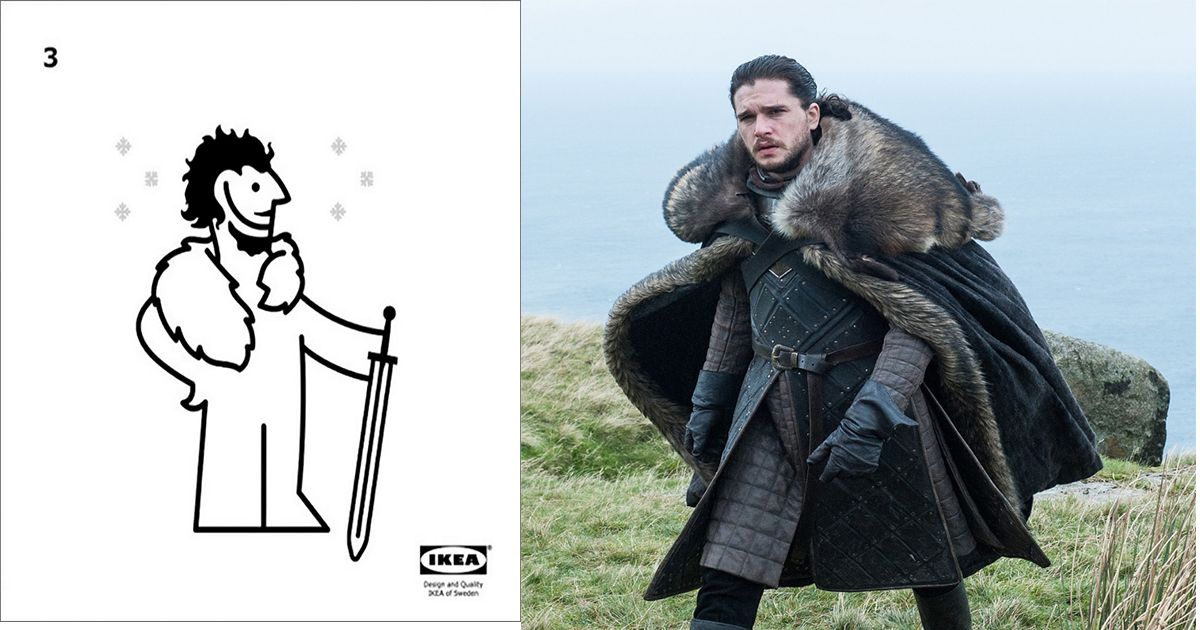 Game of Thrones: Ikea nous montre comment faire une cape avec un tapis 16 août 2017 Facebook Article Précédent Article Suivant Il y a quelques jours, la costumière de Game of Thrones a expliqué que certains costumes de la série, dont ceux de la garde de nuit, étaient fabriqués avec des tapis Ikea. Ikea a donc fait un tutoriel qui nous explique comment faire: Facebook Article Précédent Article Suivant
