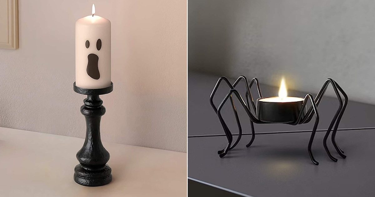 On retrouve des coussins brodés de squelettes, un gant de cuisine qui change de couleur en fonction de la chaleur, des guirlandes lumineuses dotées de petites citrouilles ou encore des bougies en forme d’araignées ou de fantômes.