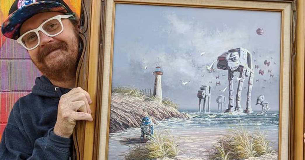 Il achète de vieux tableaux pour ensuite y peindre des éléments de Star Wars