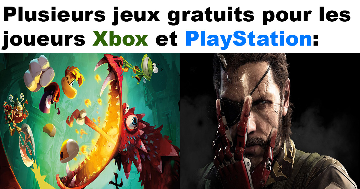 La liste des jeux gratuits de mai 2018 sur Xbox One et PlayStation 1 mai 2018 Facebook Article Précédent Article Suivant PlayStationBeyond: Two Souls-PS4Rayman Legends-PS4 Risen 3: Titan Lords-PS3Eat Them!-PS3King Oddball -PS VitaFurmins-PS VitaXbox Super Mega Baseball 2-Xbox One-1 au 31 maiMetal Gear Solid 5: The Phantom Pain-Xbox One-16 au 15 juinStreets of Rage-Xbox 360-1 au 15 maiVanquish-Xbox 360-16 au 31 mai Facebook Article Précédent Article Suivant