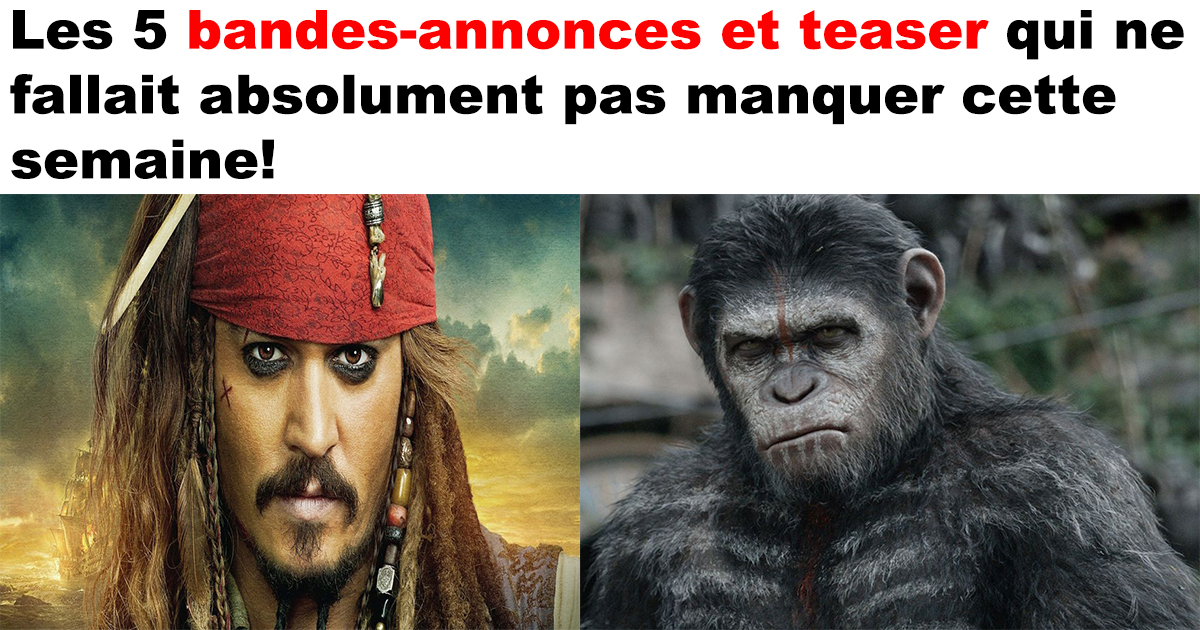 1) Pirates des Caraïbes 5 : Dans ce 5ième film Jack Sparrow devra trouver les Tridents de Poséidon pour avoir le contrôle total des océans. Il y aura aussi le pirate Salazar qui essayera de tuer Jack Sparrow comme vous pouvez voir dans ce trailer: