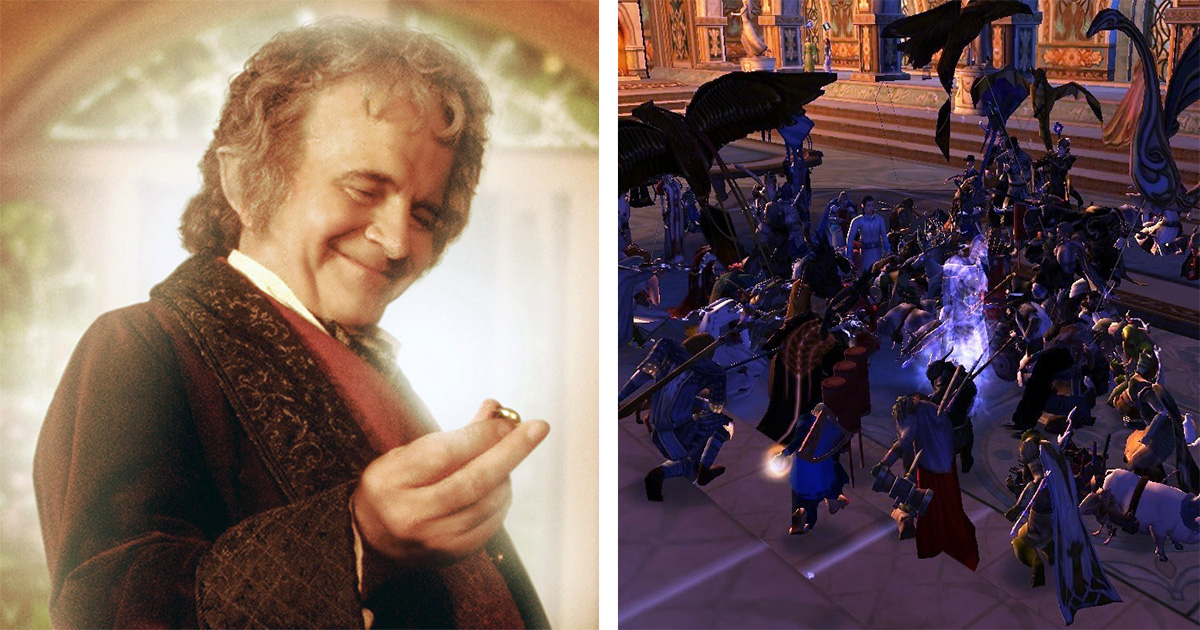 Pour cela, des centaines de joueurs se sont connectés sur différents serveurs. Un groupe de joueurs s’est rendu à Rivendell pour se rassembler autour du PNJ de Bilbo Baggins dans le Hall of Fire.