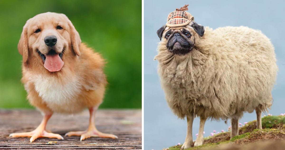 La page Instagram animals.hilarious s’est amusé à remplacer le visage de plusieurs animaux par celui d’un chien. Voici le résultat :