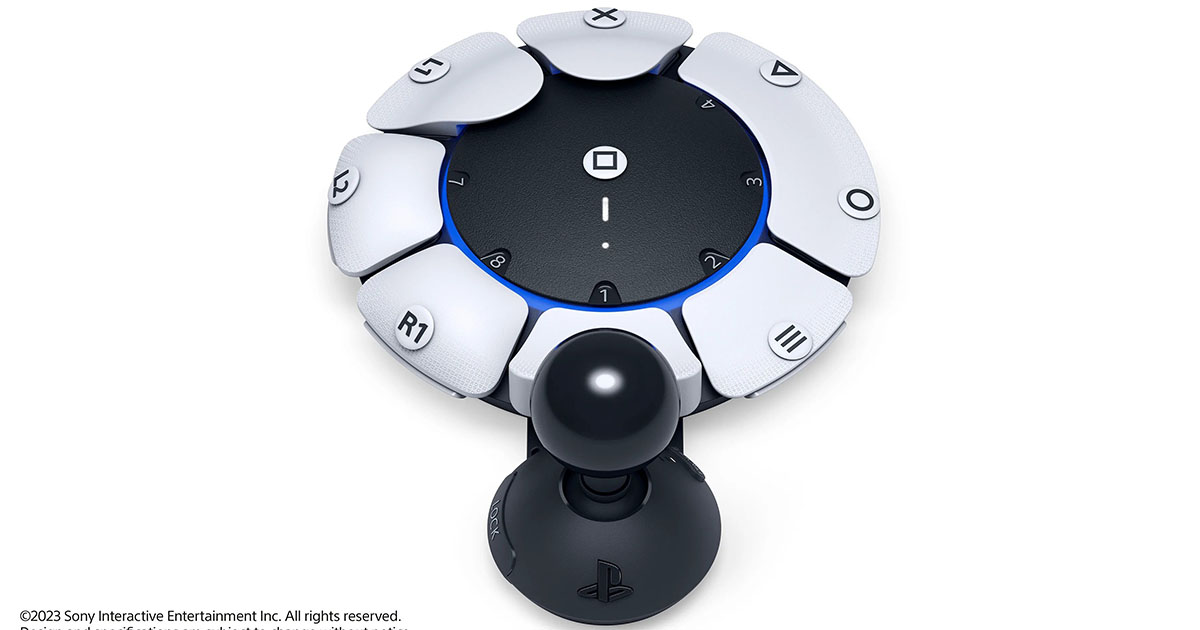 La manette circulaire contient plusieurs emplacements pour brancher des boutons et de stick analogique, qui peuvent être insérées à différents endroits sur l’appareil en fonction des besoins de l’utilisateur. Lorsque l’appareil sera lancé, il sera utilisable en tandem avec un deuxième contrôleur personnalisable, ou même un DualSense pour offrir également une personnalisation supplémentaire.