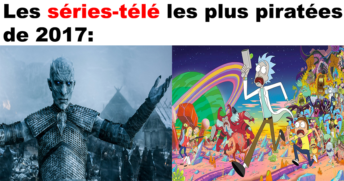 Comme chaque année, le site Torrent Freak a publié son classement des séries-télé les plus téléchargées illégalement de l’année et, sans surprise, on retrouve encore une fois Game of Thrones à la première place du classement: