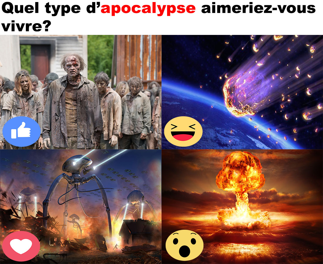 Quel type d’apocalypse aimeriez-vous vivre? 6 juin 2017 Facebook Article Précédent Article Suivant Facebook Article Précédent Article Suivant