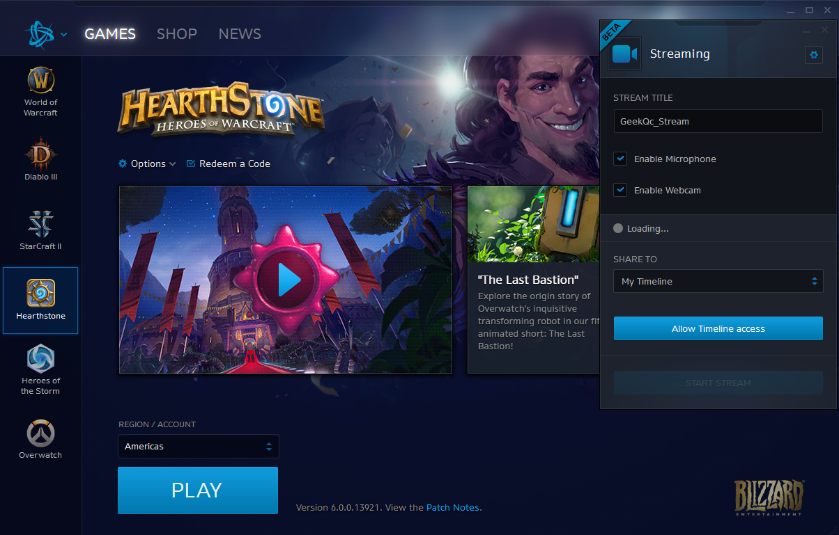 En juin, la compagnie Blizzard avait annoncé un partenariat avec Facebook pour permettre aux joueurs de streamer facilement les jeux Blizzard directement sur Facebook.